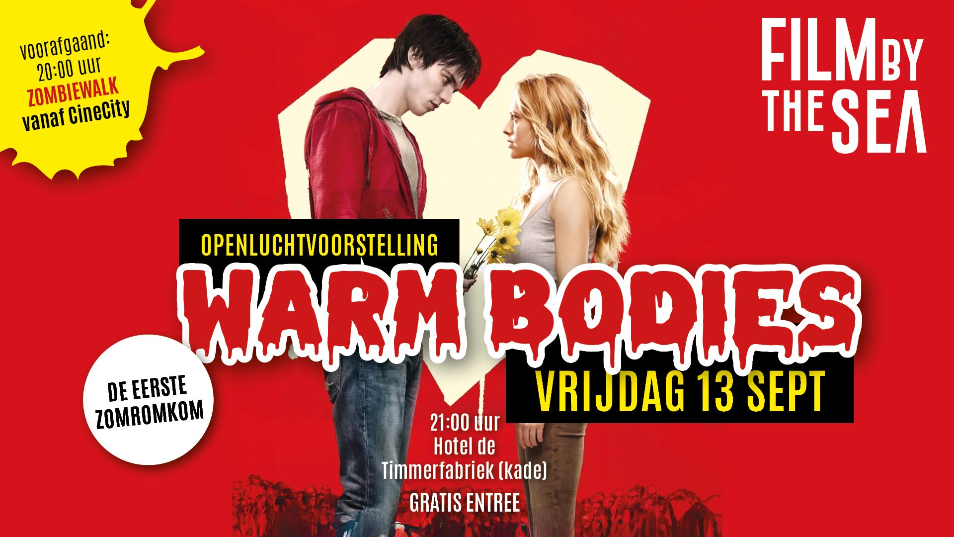 Vrijdag de 13e in september is het dan zover! Samen met Film By The Sea organiseren wij een openluchtvoorstelling op het terrein voor Hotel de Timmerfabriek. Toegang hiervoor is gratis! Om de avond nog spannender te maken, hebben we een aantal spooky arrangementen samengesteld.